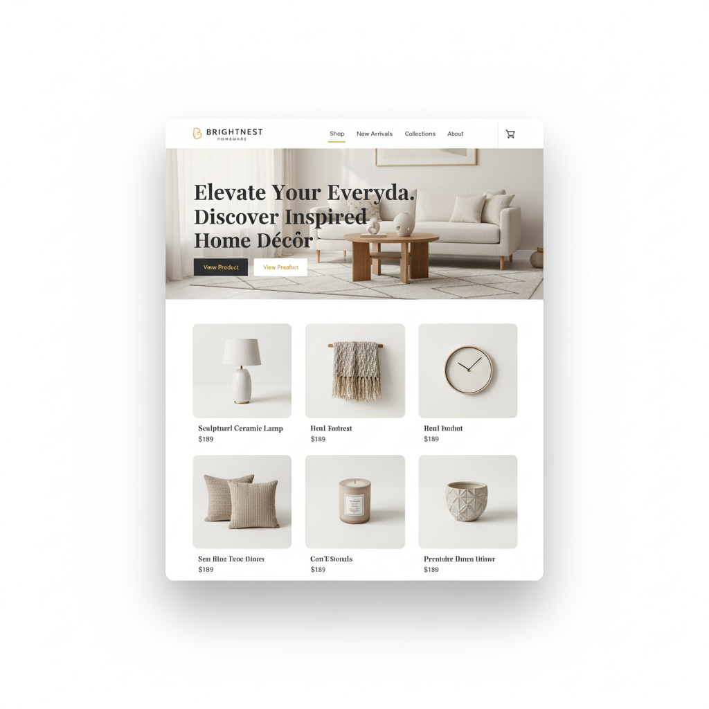 Brightnest Homeware’s product grid was redesigned for clarity, aesthetic balance, and faster browsing.